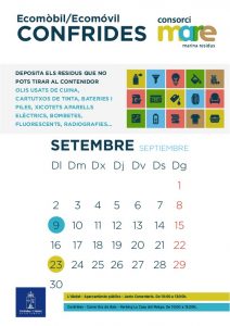 Calendario de Septiembre del ecoparque móvil para depositar los residuos que no se pueden tirar al contenedor.