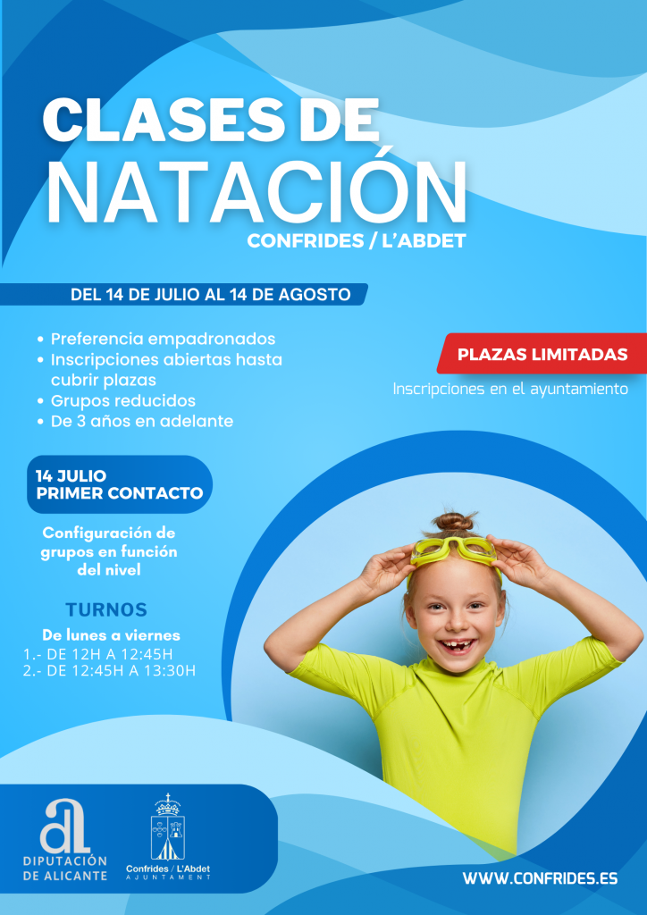 Desde el Ayuntamiento de Confrides – L’Abdet organizamos las clases de natación y aquagym 2025 que se desarrollarán en la piscina municipal.
