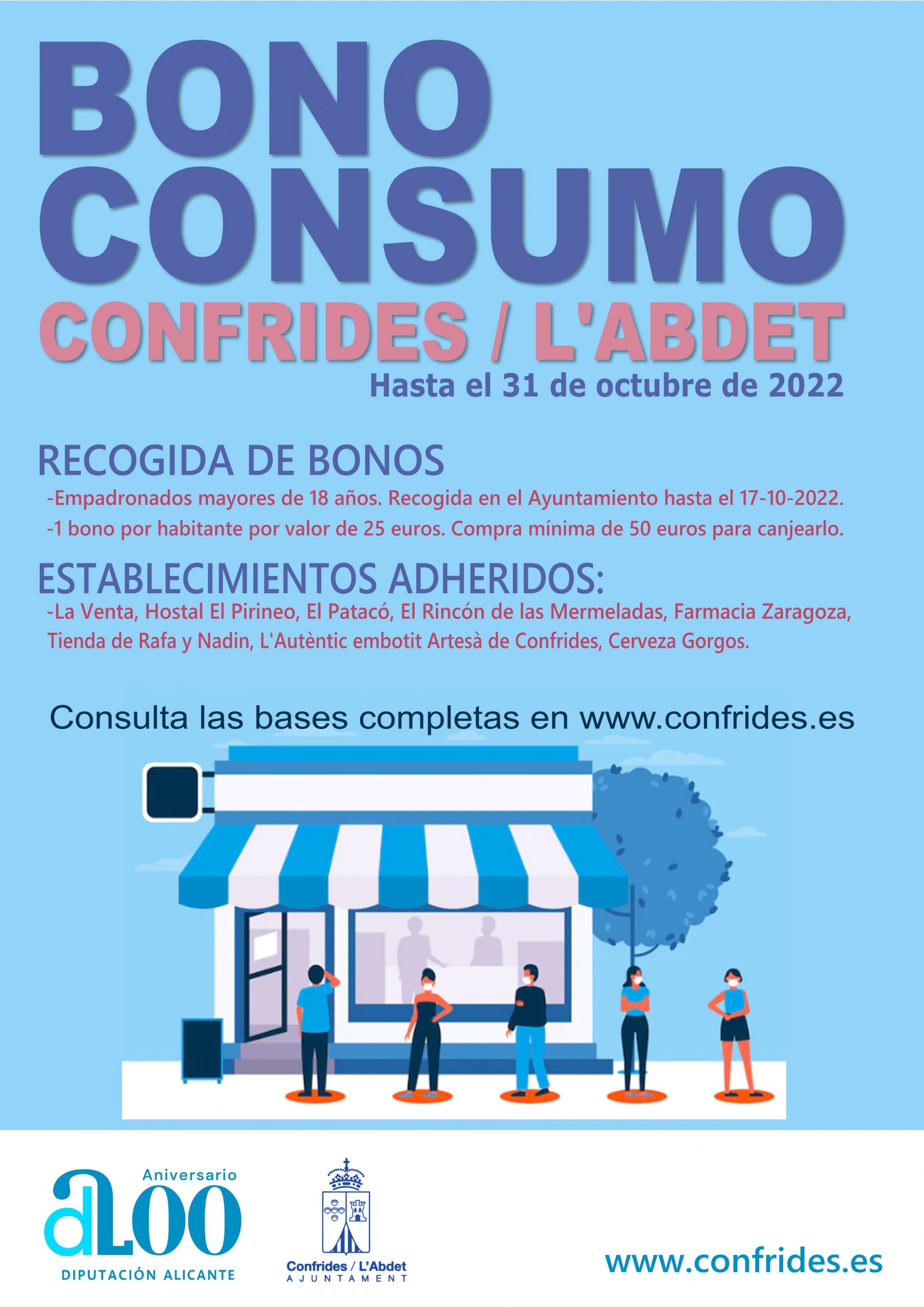 El Ayuntamiento de Confrides / L’Abdet con el apoyo de la Diputación de Alicante pone en marcha BONO CONSUMO Confrides / L’Abdet con el objetivo de impulsar la economía local.