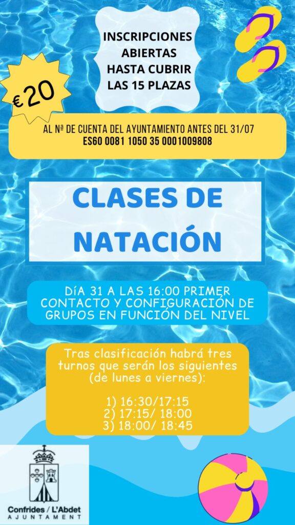 - Deberán abonar los 20€/niñ@ de la inscripción antes del 31 de julio al n° de cuenta del ayuntamiento: ES60 0081 1050 35 0001009808