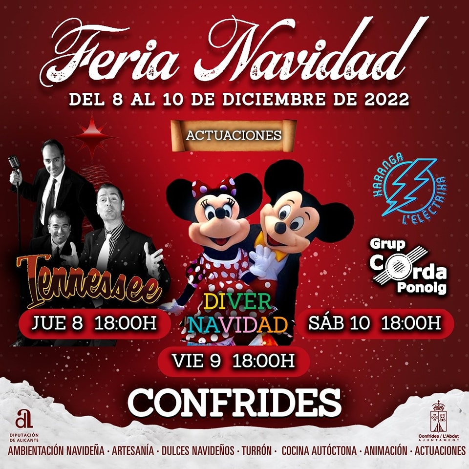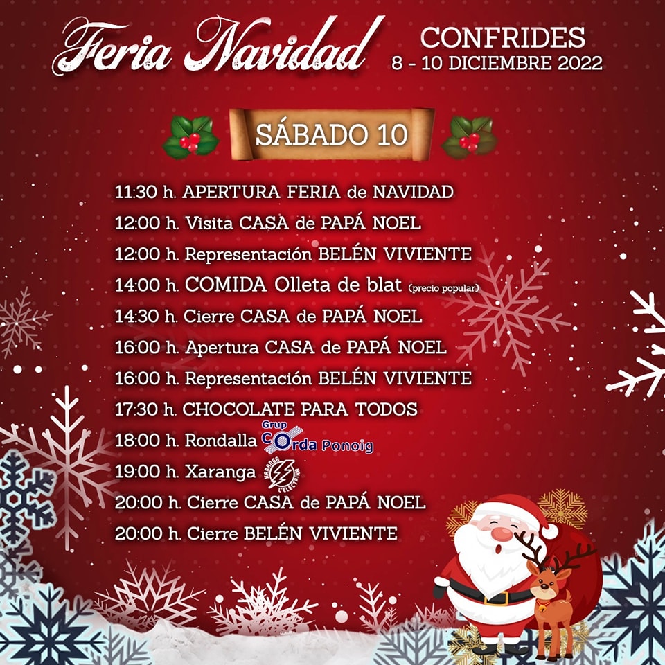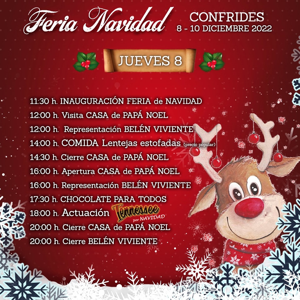 Vive la magia de la Navidad en la Feria de Navidad de Confrides del 8 al 10 de diciembre. Visita LA Casa de Papá Noel y el belén viviente, actuaciones, animación, cocina autóctona, artesanía, dulces navideños, la mejor gastronomía y muchas sorpresas en un ambiente navideño único.