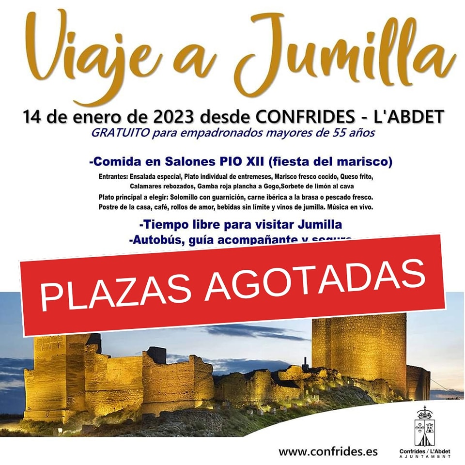 Se han AGOTADO TODAS LAS PLAZAS disponibles para el viaje a Jumilla organizado por el Ayuntamiento.